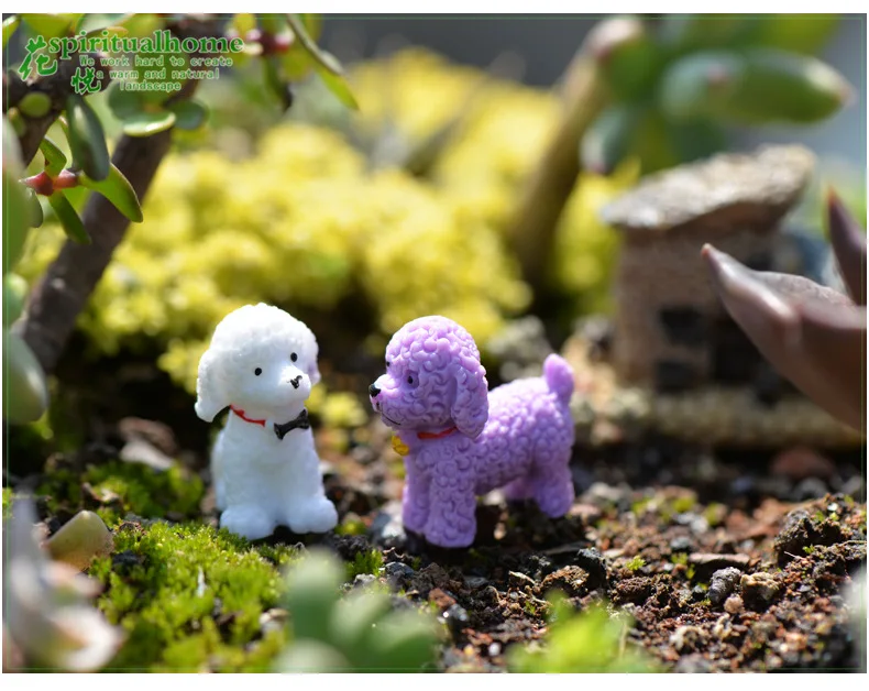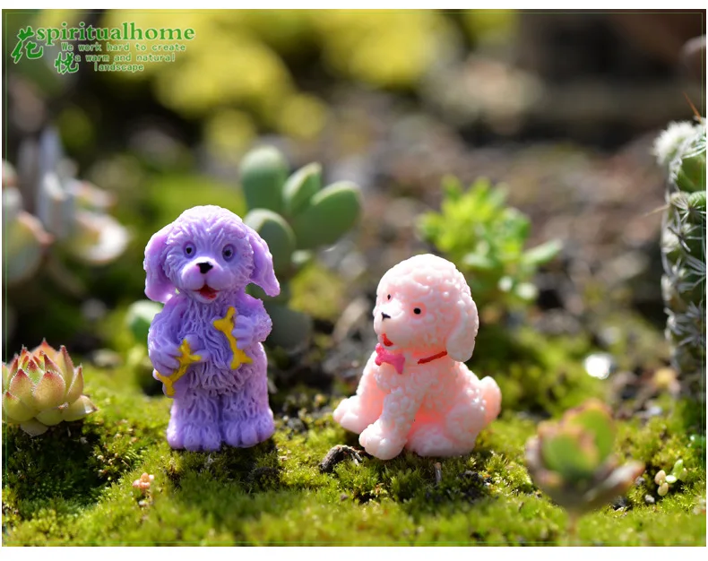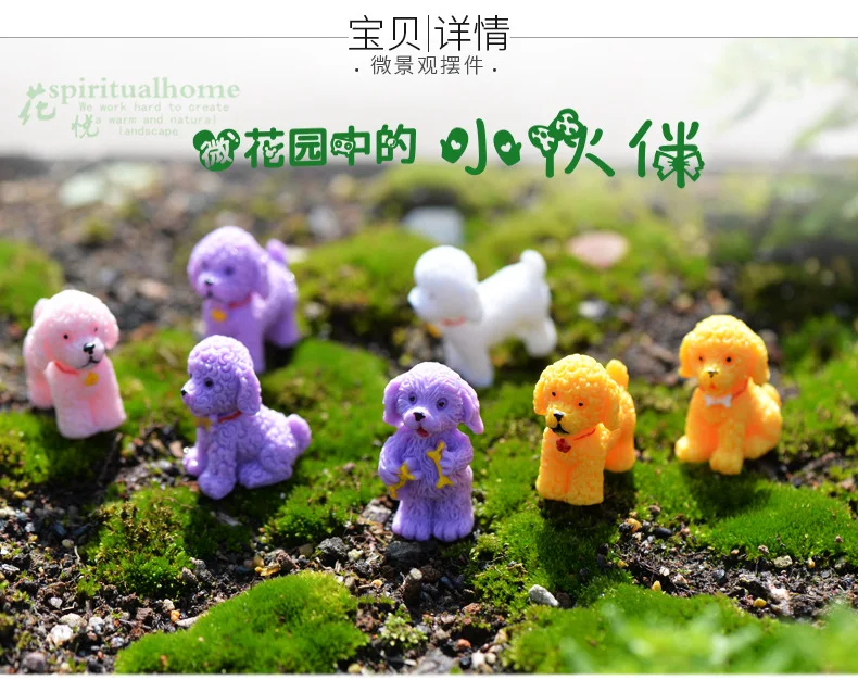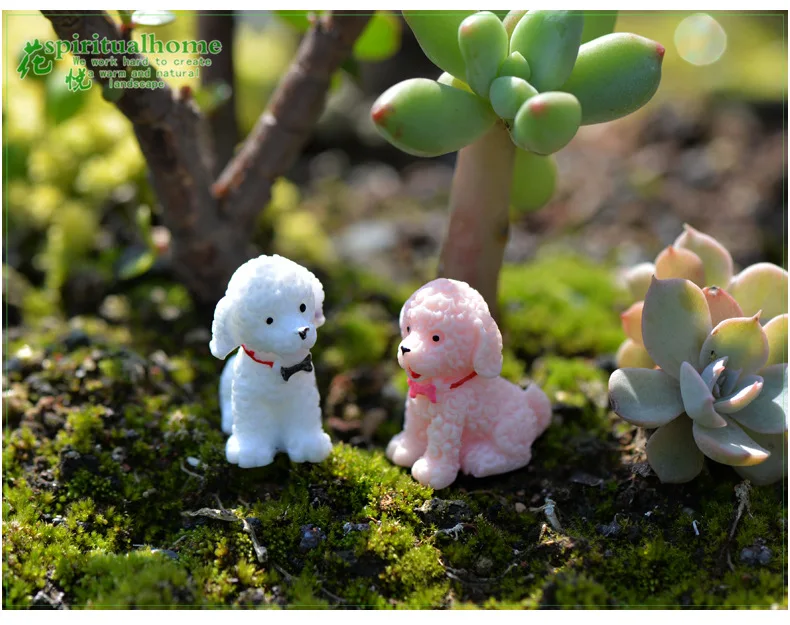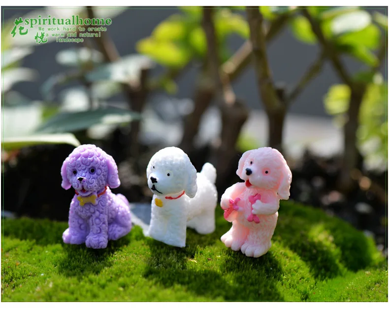4pcs Mini Cute Poodle Dog Figurines Miniature Fairy Garden Dolls