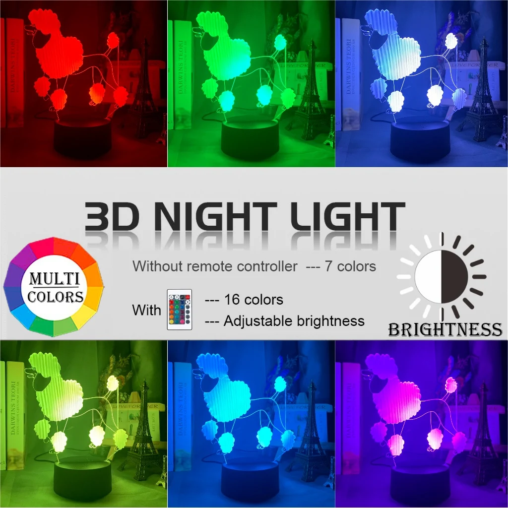 Acrylic Led Night Light Poodle Lover Home Decor